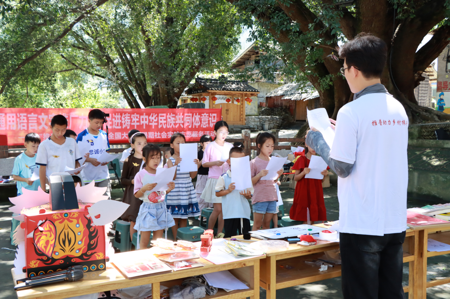 “南岭苗乡普语桥”青年团自成立以来,紧扣“工于建构,成于创造”的校训精神,坚持以“育德健能”为理念,打造“快乐体育进社区”品牌,“政校企”三方联动激活乡村发展动能。2025年暑假,团队13人奔赴贵州省榕江县忠诚镇开展了为期8天的社会实践。志愿者们针对村民普通话表达短板,团队以“育德健能”为内核推出系列创新服务:为非遗传承人、民宿经营者开展职业技能培训,覆盖700余人次;为留守儿童开设“榕树下的推普课程”,通过趣味游戏、文化手工课筑牢语言认同;打造“语言文化市集”并开展7场直播,单场点赞破10万人次,推广非遗双语内容与乡村特色产业;定制无人机360°全景“普语扫码导览地图”,以数字工具赋能乡村文旅发展。此次实践形成调研报告、微视频、文旅图文等多项成果,有效助力当地产业升级与文化传播,获榕江县忠诚镇党委及村民的一致认可,相关事迹获南方+、大学生云报等媒体报道,社会反响良好。