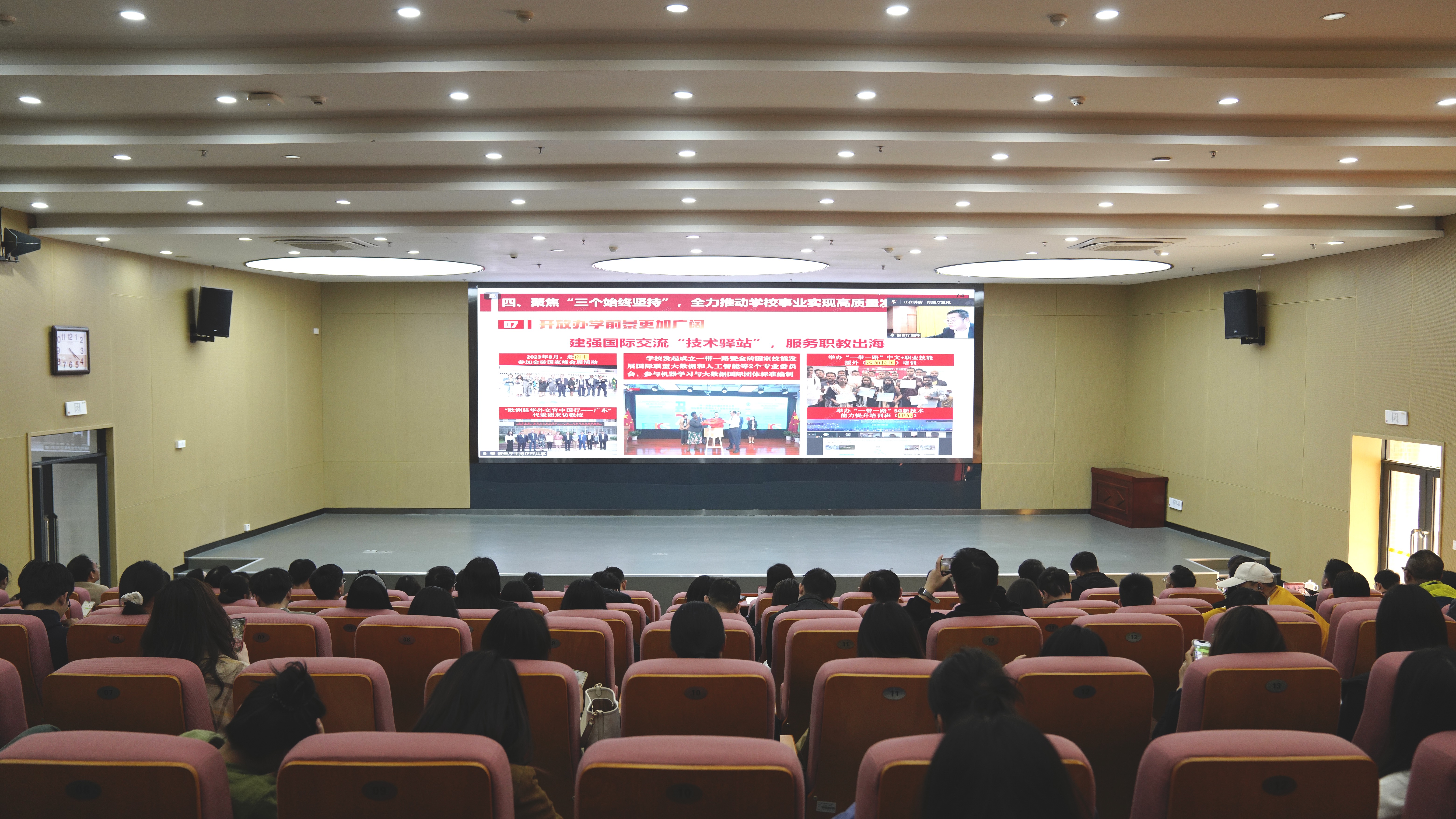 叶忠明书记在总结时指出,方迎生书记的专题报告既展现了松山职院“敢为人先、追求卓越”的奋斗历程,也传递了“团结一心、攻坚克难”的精神力量,诠释了松山职院“笃志弘毅、止于至善”的校训,特别是培养高素质干部队伍促进学校事业高质量发展的经验做法、办学治校的创新举措,十分值得我们学习借鉴。他指出,全体教职工要认真贯彻落实2026年全国教育工作会议和全省教育工作会议精神,紧紧抓住职业教育发展的新机遇,强化“敢闯敢干、力争上游”的进取精神,进一步解放思想、打破思维定势,敢于啃硬骨头、敢于涉险滩,在“双高”建设、产教深度融合、服务经济社会发展等工作任务上主动出击、奋勇争先、力争上游。要强化“团结协作、万众一心”的协作意识,把“小我”融入“大我”,把个人奋斗融入学校发展,主动融入大局、服务大局,汇聚起推动学校高质量发展的强大力量。要锤炼“艰苦奋斗、勇于发展”的实干品格,脚踏实地、久久为功,发扬“钉钉子”精神,一年接着一年干,一锤接着一锤敲,以“功成不必在我,功成必定有我”的精神境界,沉下心来抓教学,静下心来抓内涵,俯下身子做服务,增强“时时放心不下”的责任感和“事事紧抓不放”的执行力,借鉴松山职院的好经验、好作风、好精神,以更加昂扬的斗志、更加务实的作风、更加有力的举措,进一步推进学校事业高质量发展。