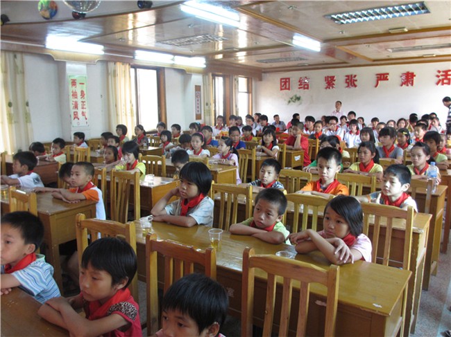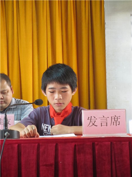 南盛镇留守儿童代表上台发言。他感谢学院支教的师生们在他们爸爸妈妈不在身边的日子里给他们带来了温暖和欢笑,关心和爱护。他说,我们很弱小,但我们有颗坚强的心,因为有你们这些关心、爱护我们的人们,我们一定好好学习,不辜负社会对我们的期望。