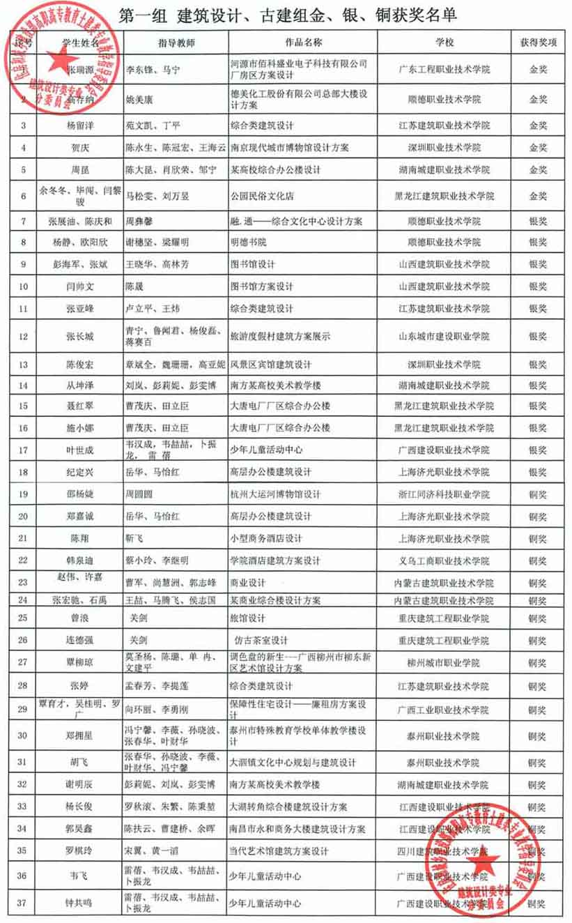 本次大赛的主题是:设计,创意生活。参赛作品类别按专业分为建筑设计、古建类组;建筑装饰、室内设计类组;环境艺术类组等三组。共收到来自全国46所高职院校的278幅作品,我院学生张瑞源的毕业设计作品——河源市佰科盛业电子科技公司厂房区设计方案,采用园林化的设计思想,使建筑功能单元有较好的景观,整体建筑通过地面庭院、过廊、空中花园等处理手法创造出活泼与变化的建筑空间,形成典雅朴素并具岭南地域性的建筑风貌。建筑立面设计体块感比较强烈,造型明快、新颖、富于时代特点,最终击败了众多选手,荣获金奖,为我院赢得荣誉! 供稿人:李东锋 审校人:赵冬