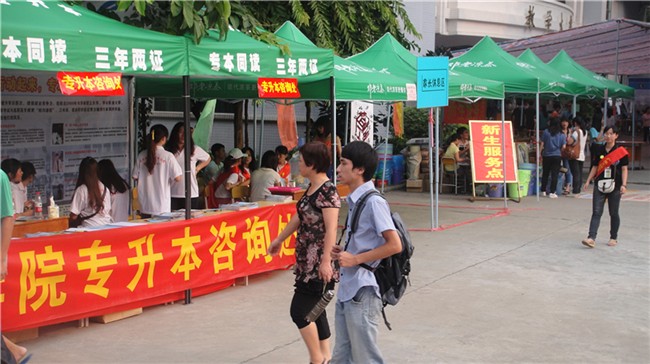 校园各宣传栏、各宿舍区以全新的面貌迎接新同学。新生报到现场流程方便快捷,工作人员竭诚服务;校园的每个角落也透露出了师生温暖的关怀,学院在龙洞进校区的各个路口设置了指引图和志愿者,校园内设置了多个家长休息处、新生服务点、车辆停放点,设置了矿泉水供应点,免费派发凉茶;各院、系都安排了接待点,在宿舍区贴上欢迎新同学的精美海报,有的系制作了专业风采展示板、电梯学院还在新生宿舍贴上温馨提示,让新生处处感受到学院的文化和关怀;学生工作部给每位新生送上新生入学指南,给新生带来便利。
