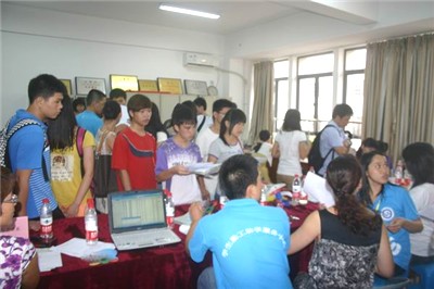 9月9日上午7点,学院各相关职能部门、各院、系师生经过精心准备,以良好的精神面貌按时到位,开始办理新生入学手续。7点半左右,新生报到开始出现高峰期,注册、缴费、托运行李、找宿舍,都在工作人员和师兄师姐们的一条龙服务下有序开展。每有新同学踏入校门,志愿者马上微笑相迎,帮助新同学拿行李,带领他们到指定地点报到,各院、系安顿住宿,详细解答新生们的咨询,给予温馨提示,给新生和家长带来温暖和感动。