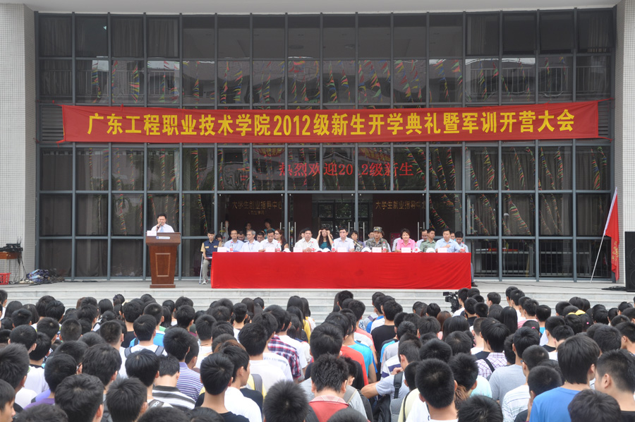 2012年9月10日上午,学院在行政楼门前广场隆重召开2012级新生开学典礼暨军训开营大会。学院党政领导和各处(室)、系(部、学院)、中心(馆)负责人、各系(学院)书记(副书记)及2012级新生参加了会议,教务处负责人王胜利副教授主持会议。