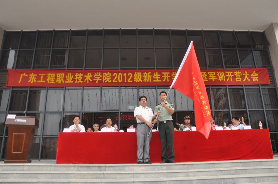 会上郭乐宏同学以无比激动的心情代表新生发言,周锦添老师代表全体教师致辞,军训部队陈建红副大队长讲话,学院党委副书记、纪委书记温孝胜博士代表学院授旗。