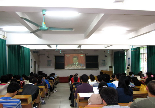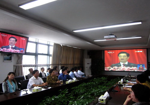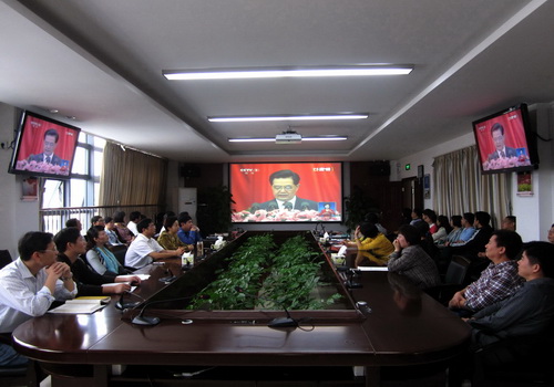 学院领导和师生员工认真收看党的十八大开幕式盛况