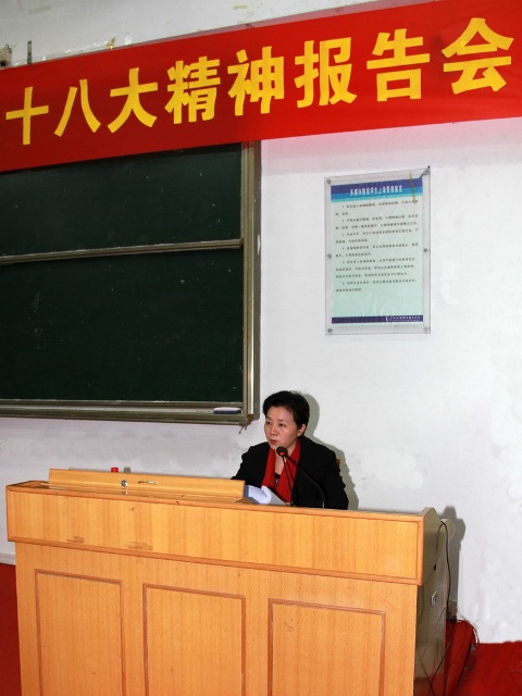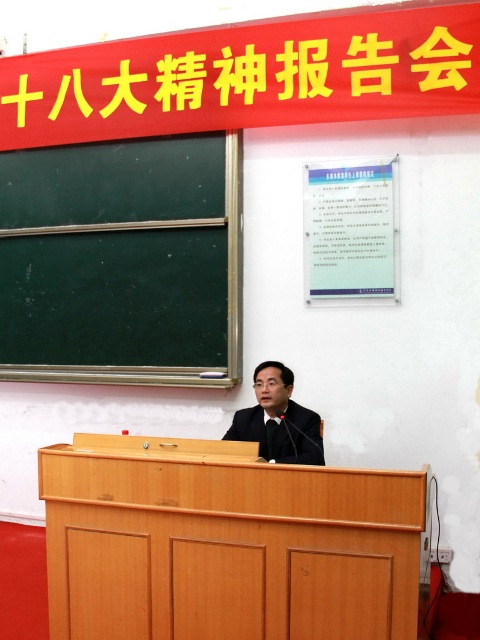 接着刘书记传达了党的十八大代表、省委教育工委书记、省教育厅厅长罗伟其在省委教育工委传达学习贯彻党的十八大精神报告会上的讲话。重点指出学习贯彻好党的十八大精神,是当前和今后一个时期的首要政治任务,各单位各部门党员干部要以"解放思想,改革开放,凝聚力量,攻坚克难"的精神状态投入到学习党的十八大精神的热潮中,要以"创强争先建高地"为总抓手,以协同创新为引领,通过加快转变高等教育发展方式,提高高等教育办学水平,优化结构、打造特色等全面提高高等教育质量。要通过创新党建工作机制,增强党建"主业"意识;深化学习型党组织创建活动,形成读书活动制度化;夯实党的基层组织,提高基层组织活力;全面加强民办高校党建;密切联系群众,大力落实为民务实清廉的要求,提高我省高校党建工作科学化水平。
