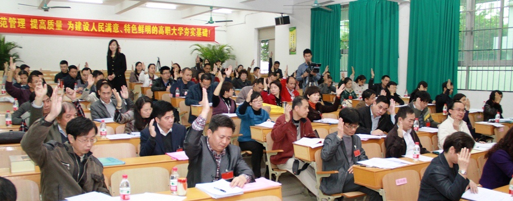 会议号召全体师生员工在学院党委的坚强领导下,继续高举中国特色社会主义伟大旗帜,深入贯彻落实党的十八大精神,按照学院确定的工作目标,同心同德,群策群力,扎实工作,开拓奋进,为把广东工程职业技术学院"建成人民满意、特色鲜明,在全国乃至国际有一定影响力的高职大学"而努力奋斗。