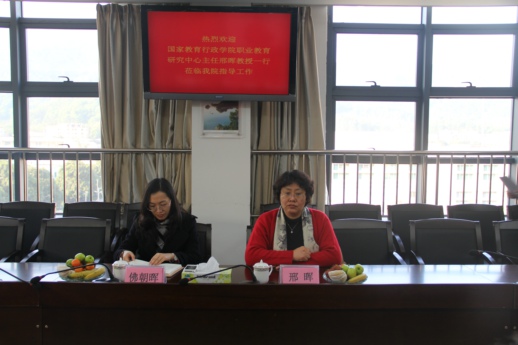 1月14日下午,国家教育行政学院职业教育研究中心主任邢晖教授、副主任佛朝晖副研究员一行来我院调研座谈,学院党委书记刘文清博士、执行院长劳汉生教授和相关部门负责人参加座谈会。
