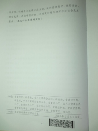 中共广东省委政策研究室2013年1号文就我院办学发展模式刊发调研专报