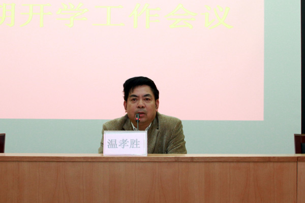 金蛇曼舞贺新年,慷慨激扬谱新篇。2月25日下午3点,我校在新年刚刚落成的图书馆报告厅召开新学期工作会议会议,部署安排新学期开学相关工作。党委副书记、执行院长劳汉生,党委副书记温孝胜、副院长胡艳曦、党委副书记李军、副校级领导陈杰伦、徐启扬和全校教师中级职称以上和科级以上行政、教辅人员260余人出席会议。会议由党委副书记温孝胜主持。