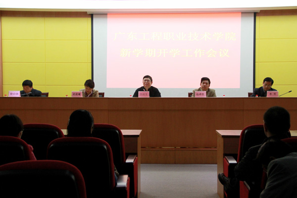 接着劳院长代表学院党政部署《广东工程职业技术学院2013年党政工作要点》,从以下十一个方面进行解读:一是认真学习贯彻党的十八大精神,全面加强党的建设,提升学院科学发展的能力;二是以创促建,协同创新,增强造血功能,加速学院转型升级;三是健全规章制度,树立服务意识,规范管理,努力提高学院各级管理层面执行力;四是进一步深化教学改革,坚持"校企合作,工学结合"的发展道路;五是扎实推进机构改革、用人制度改革,科学设置岗位,完善教职工考核体系;六是"内培"和"外引"并重,打造我院高层次人才队伍,进一步抓好队伍建设;七是以平台建设为基础,以科研项目为抓手,进一步提升科研水平;八是大力加强精神文明建设和校园文化建设,着力打造创业就业式校园,全面提升学院综合竞争能力;九是以学生思想道德教育、行为习惯教育为重点,强化学生管理,促进良好学风的形成;十是开拓国际视野,做强继续教育,大力推进社会服务工作跃上新台阶;十一是组建后勤集团,优化、美化校园环境,提高服务保障水平。