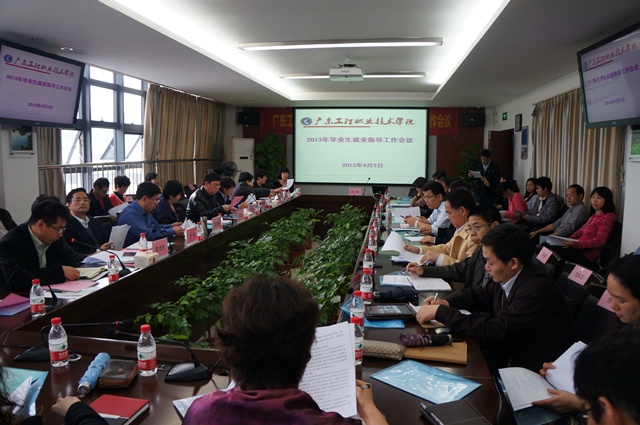 招生与就业指导办公室李红主任在会上传达了"广东省2013年普通高校毕业生就业工作会议"精神:1.广东省2013年就业工作会议时间、地点、参加人员;2.传达了陈云贤副省长讲话精神;3.广东省教育厅罗伟其厅长讲话精神;4.广东省教育厅王玉学副巡视员讲话精神;5.会上6所院校代表进行就业工作交流发言情况;6.广东省政府江海燕副秘书长对就业工作提出的相关要求。