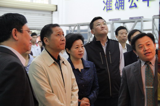 罗伟其厅长(左二)在学院领导陪同下视察电梯技术学院