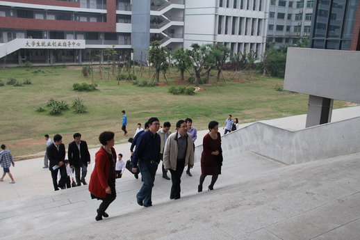 我院党委书记刘文清,院长劳汉生,副院长胡艳曦、副书记李军、副院级干部徐启扬等学校领导以及有关部门负责人陪同王厅长一行参观了校园和新图书馆等教学设施。在图书馆前,刘书记向王厅长一行介绍了我院目前准备的就业创业校园项目,在新图书馆王厅长询问了学院建设等相关情况,对学院办学成绩给予肯定,希望学校挖掘、凝炼特色,打造自有品牌,进而办出特色,扩大影响,拓宽思路,谋求更大发展。