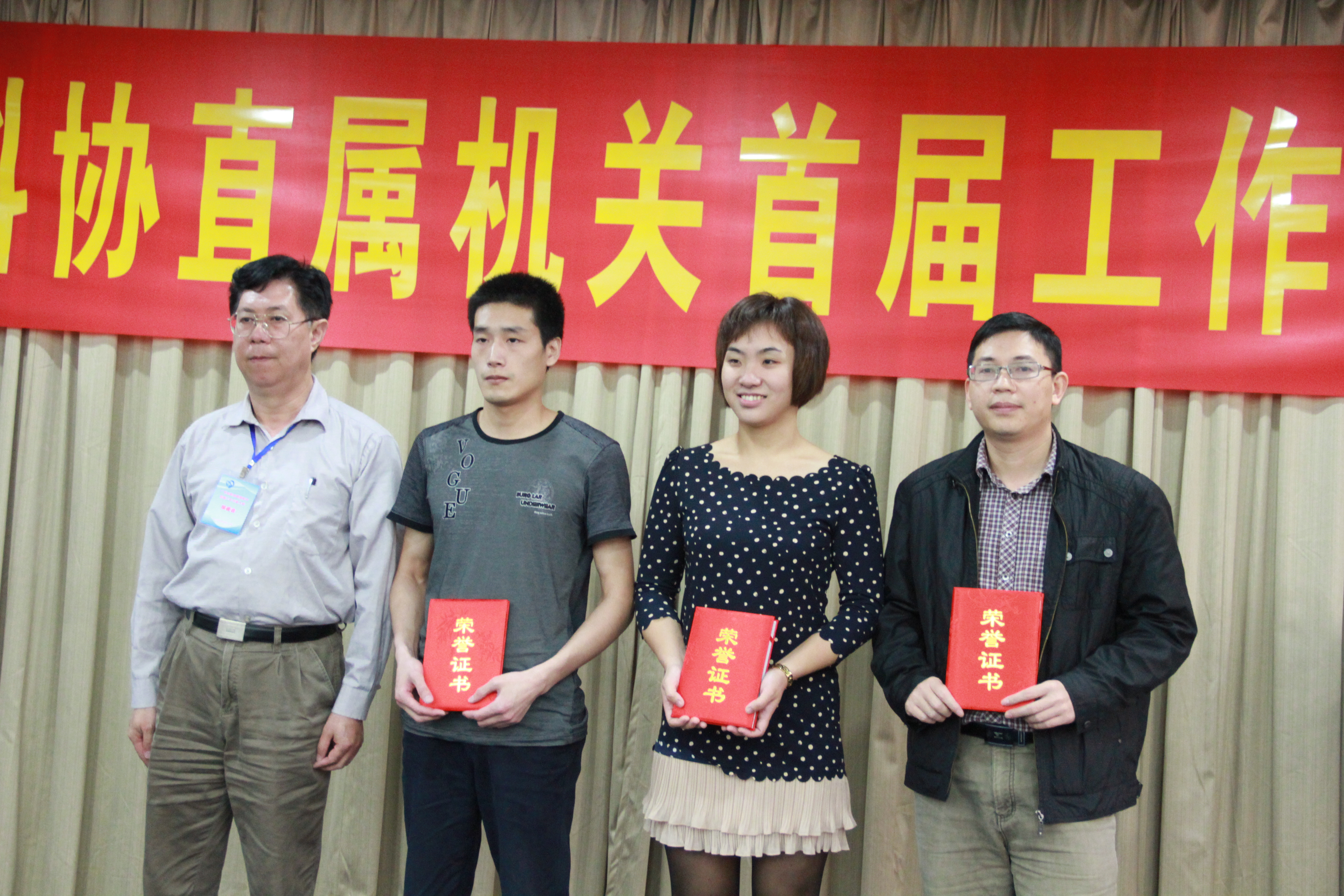 省科协直属机关党委副书记、党办主任黎伟民为获得比赛二等奖选手颁奖
