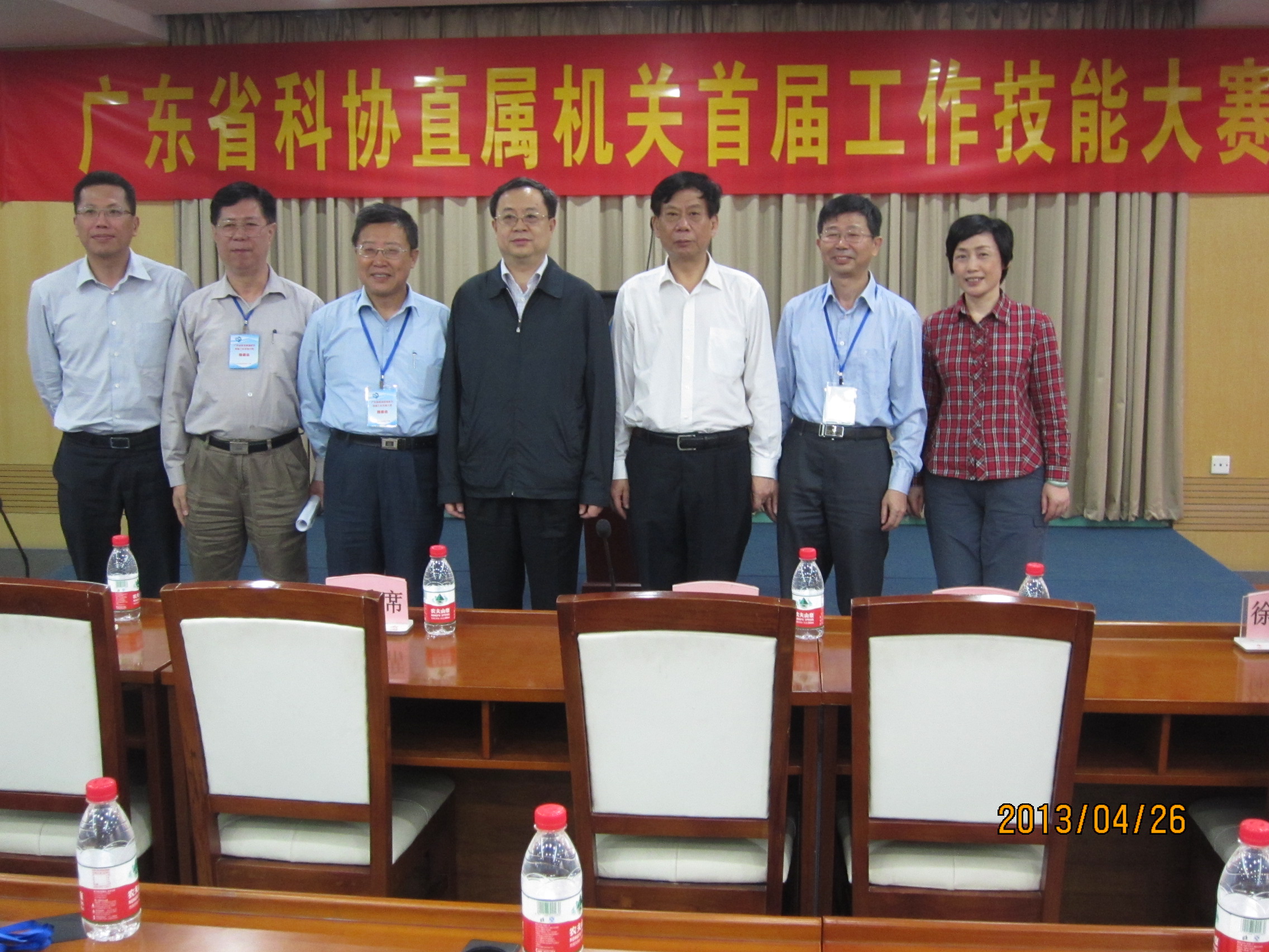 广东省直工委书记李学同(中)和副书记董励国(右三)莅临省科协指导大赛工作