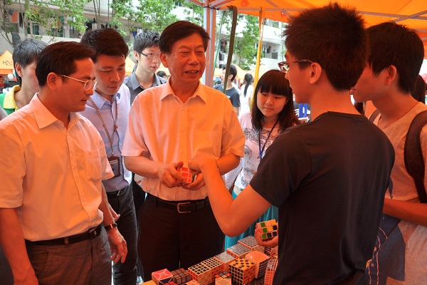 调研会结束以后,董书记一行还参观了我院的社团文化展,在现场与各社团进行了亲切互动,观看了武术协会、魔方协会、书法协会等协会的演出。对我院学生社团的建设提出宝贵的建议。