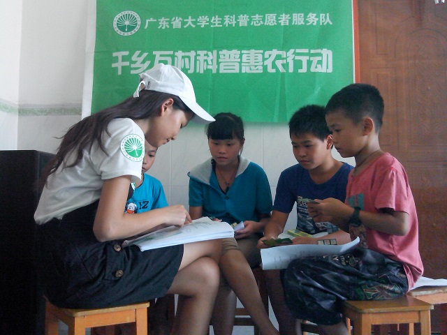 为贯彻落实省委省政府有关"双到扶贫"的工作精神,确实提高农民生活水平,在广东省科协、广东省科普中心与广东省科普志愿者协会的大力支持下,我校团委积极联系各系(院),组建了九支"千乡万村科普惠农行动"大学生暑期社会实践服务团队,共计79名学生,远赴粤东、粤西、粤北等边远贫困地区开展科普支教宣讲及农民科学素质现状调研活动,为广大村民送去健康、环保、防灾减灾及农村实用技术等科学知识。