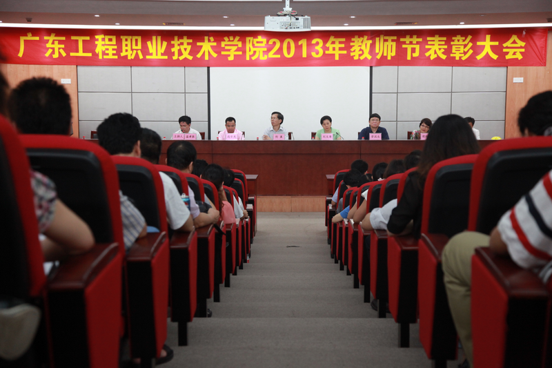 表彰大会在庄重的国歌声中正式开始。省科协何真书记发表热情洋溢的讲话。何书记高度评价我院近年来所取得的成绩,并对全体教职工提出三句箴言:教育是一门事业,需要奉献;教育是一门科学,需要探索;教育是一门艺术,需要创造。会上,冯日光副主席代表省科协向学院赠送教师节慰问金。劳汉生院长宣读了"关于表彰2012—2013学年度优秀教师、优秀教育工作者、优秀政治辅导员、优秀班主任和优秀工勤人员的决定",共有139名教职工荣获优秀称号。学生代表冯培文同学饱含深情地朗读了教师节献词,然后进行颁奖仪式。三位获奖教师代表在会上发表了"立德树人,同心共筑中国梦"的感言。