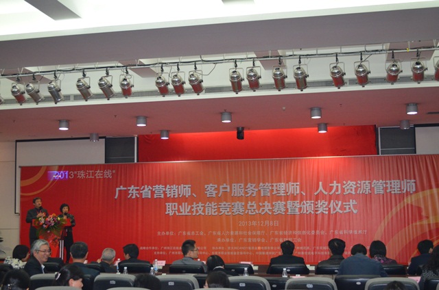 2013年广东省职业技能大赛是广东省总工会、广东省人力资源和社会保障厅、广东省经济和信息化委员会、广东省科学技术厅等四家单位联合主办,由广东营销学会承办的省级大赛。