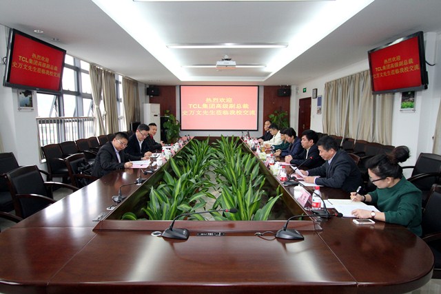 2月28日,TCL集团高级副总裁史万文先生一行来校考察。学校党委书记刘文清,党委副书记、纪委书记温孝胜,副校长胡艳曦,副校级领导、创业学院院长徐启扬热情接待了来宾一行并在607会议室召开座谈会。会议由温孝胜副书记主持,刘文清书记致欢迎辞。TCL集团电子商务中心(惠州酷友网络科技有限公司)总经理刘文武、人力行政部部长马俊、创业学院黎惠忠博士,办公室有关负责人参加了座谈会。