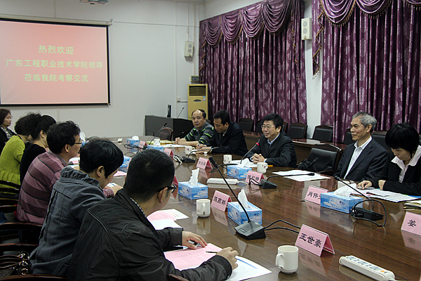 广东水利电力职业技术学院是"国家骨干高职院校立项建设单位"、广东省"职业教育先进单位"。近年来,该校的人才培养质量和整体办学水平位居广东省高职院校的前列。该校的工会工作也取得优异成绩,2008年该校工会被中华全国总工会授予"模范职工之家"称号。在该校行政楼会议室,徐启扬主席一行与该校党委委员、工会主席钱武、工会副主席熊淑青及工会相关干部进行座谈交流。钱武主席对我校前来考察调研表示热烈的欢迎,并简要介绍了该校工会近年来取得的成绩、工会在学校工作中所起的作用和今后工会工作的基本思路。徐启扬主席就我校近年来的发展情况及工会建设方面的工作进行了简单的介绍。 座谈会上,双方就"双代会"换届程序的有关问题;工会独立法人及账户的申报及管理问题;学校工会作用、学校工会经费来源及建立学校二级工会等相关问题展开了交流。特别是就党中央出台八项规定后,工会如何拓展思维,开展各项活动,创新工作方面进行了深入探讨。双方希望通过此次调研活动进一步加深对彼此的了解,今后要拓宽沟通交流渠道,促进相互发展。随后,在水利电力职业学院工会领导的陪同下,徐启扬主席一行参观了该校宽敞整洁的校园和完备的体育配套设施。