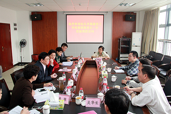 4月8日,汕头市高级技工学校党委书记、校长程拱胜一行三人来校考察。学校党委书记刘文清、校长劳汉生、副校长胡艳曦在行政楼602会议室热情接待了程拱胜一行,并进行了座谈,座谈会由劳汉生主持。学校办公室、招生就业办、继续教育学院、国际学院、后勤集团等有关部门负责人参加了座谈。