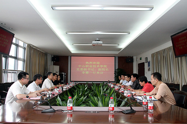 5月26日,中山职业技术学院党委副书记、副院长李懋一行来我校交流,双方在行政楼607会议室举行交流座谈会,党委副书记、纪委书记温孝胜出席会议并讲话,招生与就业指导办公室、创业学院、国际学院及办公室相关负责人出席了会议。