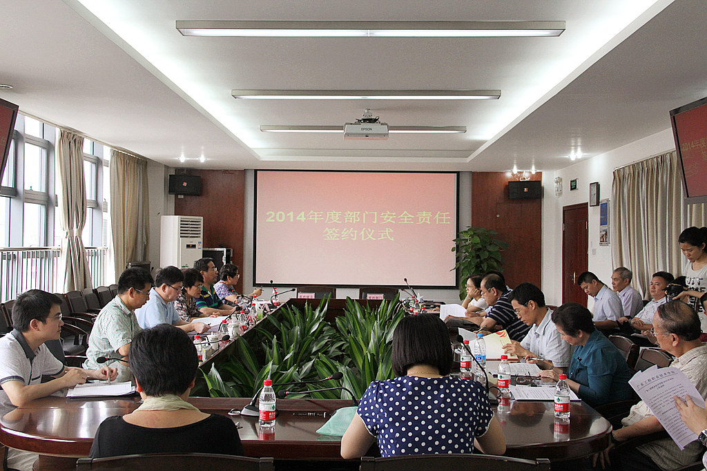 6月3日下午,2014年度部门安全责任书签约仪式在行政楼607会议室举行,校长劳汉生、副校长胡艳曦以及各部门第一负责人参加了此次签约仪式。仪式由后勤集团总经理储茂东主持。