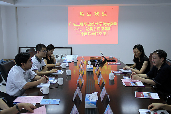 我校党委副书记、纪委书记温孝胜就我校近几年的发展情况及此行的目的做了简单的介绍。他说,我校是省教育厅直属的一所以工科为主,文、经、管、艺术兼顾的高等职业院校,学校虽历史悠久,但从2005年转制至今,仅有9年的时间,还处于发展初期,近几年发展较快,紧跟珠三角地区产业结构转型升级的步伐,坚持以市场需求为导向,以工科为主,以学生就业率和满意度等为关键指标,积极调整专业设置,优化专业结构,重点建设并形成电梯工程技术、建筑工程技术等一大批工学结合紧、办学条件好、就业质量高、办学特色鲜明的专业(群)。学校牢牢抓住提高人才培养质量和完善就业指导服务体系两条主线,努力构建毕业生高质量就业工作品牌。学校被教育部评为2012-2013年度"全国高校毕业生就业工作50强",成为广东省唯一获此殊荣的省属高校。