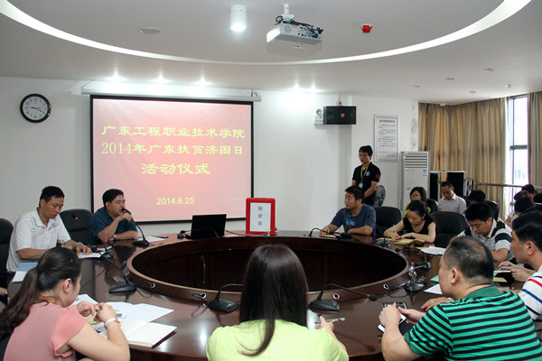 6月25日上午,由我校工会和团委共同组织的2014年"广东扶贫济困日"捐款仪式顺利结束。仪式由工会专职副主席钟向忠主持,党委副书记、纪委书记温孝胜、工会专职副主席陈纪锋、团委书记黄馥丽、团委副书记李冠文、陈雪婧、各工会小组长和团总支书记等出席了仪式。