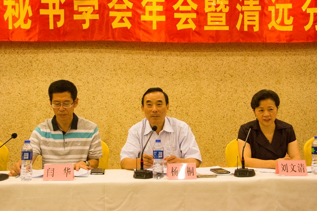 6月28日,2014年广东省秘书学会年会暨清远分会成立大会在清远市召开。省秘书学会会长杨桐,省秘书学会常务副会长刘文清、闫华,名誉副会长翁宗奕,副会长劳汉生、毕燕萍、柯智耀、黄汉兵,秘书长李艇等学会领导出席了会议。暨南大学、广东外语外贸大学、广东工程职业技术学院、清远职业技术学院、广东行政职业技术学院、阳江职业技术学院等会员单位的100多人参加了会议。这次会议总结了学会成立以来的工作和经验,探讨了学会以后的工作方法和发展方向,并为广东省秘书学会年会暨清远分会揭牌。会议分别由广东工程职业技术学院劳汉生校长、清远职业技术学院李东教授主持。