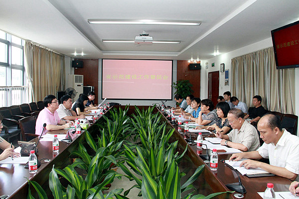 2014年7月2日下午2:30-4:00,学校在行政楼607室组织召开范建设工作促进会。会议由劳汉生校长主持,温孝胜副书记,各二级学院院长、各建设项目组负责人,纪检监察室负责人,生产实训中心负责人,示范办全体成员参加。