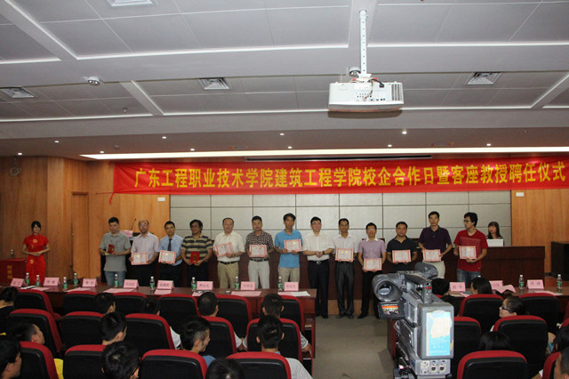 一直以来,我院高度重视师资队伍建设,大量聘请行业专家担任兼职老师,此次更是聘请了企业高管担任客座教授,他们都是行业的领军人物,如多元项目管理有限公司总监、法国建筑师Christina Revuelta(法国),广州第二建筑有限公司总工程师陈臻颖,广州市建设工程质量安全检测中心总工程师董松,广联达公司广东分公司总经理洪涛,珠海市美享工艺装饰有限公司总经理张飞(美国)和项目总监刘宗松,广州龙达工程管理有限公司总经理刘卫冈,广东华标工程检测技术中心总经理谢新宏,广州市建设工程质量安全检测中心所长周健,惠州市斐尔创有限公司总经理陈铭阶(香港),广东泰锋建筑信息科技有限公司总经理方江辉和营销总监石钰等,他们的加盟必将为我院注入新的发展动力。