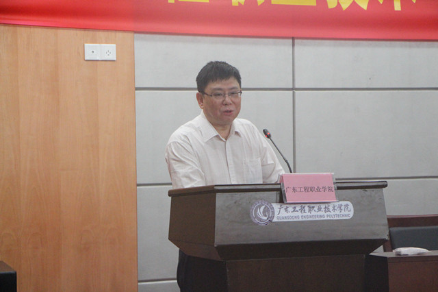 紧接着,宋怡昆简要介绍了鸿业科技公司的校企合作情况。该公司已向清华大学、同济大学等35所国内著名本科高校赠送专业软件并开展校企合作,而我校是该公司唯一赠送价值1260万元专业技术软件的高职院校。他对我院BIM中心的发展给予了充分的肯定,坚定了与我院深入开展校企合作的决心。同时,Autodesk公司也向我院捐赠了价值500万美元的BIM软件。接下来,温孝胜书记、赵冬院长、宋怡昆和樊志光共同为广东工程—鸿业科技BIM技术教育中心和Autodesk应用开发实验室揭幕。