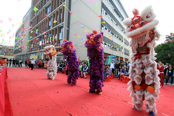 接着,我校醒狮队进行表演。表演现场锣鼓一响,立即吸引了众多教师和学生的围观。只见一头头醒狮步履时而迟疑,时而坚决,又时而试探,并不时向四周探望,像在观察环境,又像在等待观众的鼓励,在锣、鼓、钹三种敲击乐器的鼓舞中表演了腾、挪、闪、扑、回旋等高难度动作,引发观众阵阵赞声。