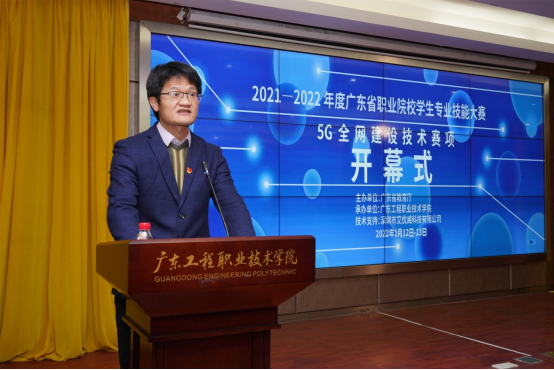 2022年1月11日至13日,广东省教育厅主办、广东工程职业技术学院承办、深圳市艾优威科技有限公司协办的2021-2022年度广东省职业院校学生专业技能大赛5G全网建设技术赛项在广东工程职业技术学院举行。本次大赛全省共有参赛队伍61支,参赛学生122人,在为期2天的赛程里展开激烈角逐。