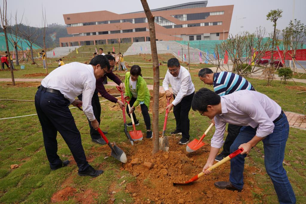 3月15日上午,校党委书记吴琦琳带领学校领导、相关部门负责人、省职教城校区职能部门及二级学院中层干部、教师代表和学生志愿者,在省职教城校区开展植树活动,以实际行动为清远市创建“国家森林城市”,建设美好校园贡献力量。
