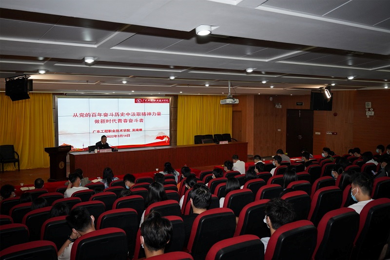 2022年3月14日,我校党委书记吴琦琳在学校图书馆报告厅以“从党的百年奋斗历史中汲取精神力量,做新时代青春奋斗者”为主题讲授了思政第一课。学校党政办领导、组宣部领导和马克思主义学院的教师代表以及百多名同学聆听了讲课。