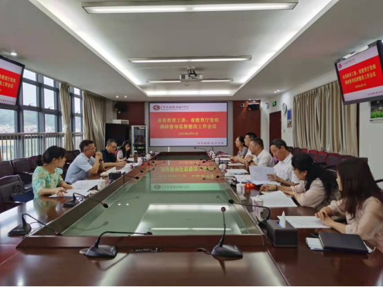 6月21日上午,省教育厅二级巡视员曾声海同志、厅学校后勤管理处处长程五一及处室同志到我校调研督导巡察反馈问题的整改工作进展情况。学校党委书记吴琦琳、党委副书记、纪委书记徐振昌,党政办公室、纪检室、组织统战部、总务后勤部(保卫部)等职能部门负责人陪同调研。