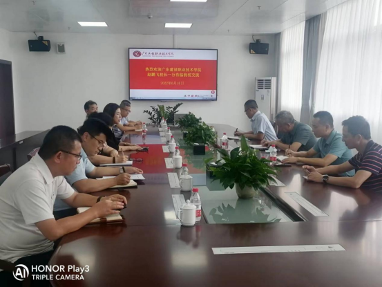 6月16日下午,广东建设职业技术学院校长赵鹏飞一行来我校省职教城校区交流。校长李丽会见了来宾,副校长揭英荣出席了交流会,党政办公室、教务处、机电工程学院、人工智能学院相关人员参加了交流。