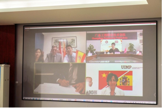 7月1日下午,广东工程职业技术学院与梅南德斯佩拉尤国际大学(西班牙)通过线上会议形式举行了合作备忘录签订仪式。出席签订仪式的学校代表有校长李丽、副校长吴志敏、国际教育学院和公共服务学院领导等,梅南德斯佩拉尤国际大学代表有校长Andradas Heranz、副校长Margarita Alfaro Amieiro 等。
