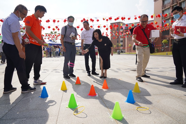 为庆祝新中国成立73周年,进一步传承和弘扬中华民族传统文化,丰富广大教职工的精神文化生活,由学校工会、宣传部和团委主办,各分工会协办的“尊师重教敬园丁 情寄圆月迎国庆”游园活动分别于9月8日和9月9日下午在省职教城和广州校区开展。校长李丽、党委副书记徐振昌、党委副书记、工会主席方燕、副校长揭英荣和张小广等学校领导参与了活动。