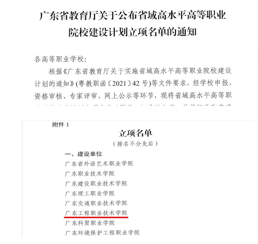 9月5日,广东省教育厅发布《关于公布省域高水平高等职业院校建设计划立项名单的通知》,我校成功入选省域高水平高等职业院校建设单位。