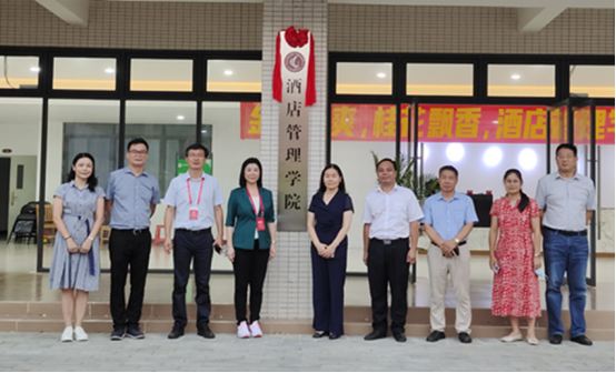 9月14日,我校酒店管理学院揭牌仪式在教学5号楼一楼举行。清远市人民政府副市长杨焕,省职教城(清远)事务中心主任段习文、副主任温秀媚,学校党委书记吴琦琳,副书记、校长李丽,党委委员、副校长揭英荣、张小广,学校各职能部门负责人及酒店管理学院中层干部出席活动并为酒店管理学院揭牌。广东省劳动模范张扬娣等专家应邀参加活动,共同见证这一重要时刻。