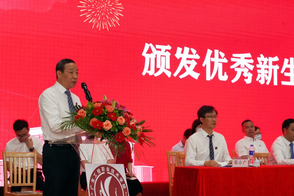 校长李丽以《踔厉奋发 勇毅前行 在青春赛道上跑出最好成绩》为题寄语新生。她表示,新一代工程人让拥有六十余载深厚历史底蕴的广东工程历久弥新,在同学们入学的美好时刻,学校成为省域“双高”建设单位,学校办学实力日增,希望新一代工程人,一是坚定理想,爱国明志,做“胸怀家国”新青年;二是立德修身,专志学业,做“德技并修”的新青年;三是脚踏实地,务实行动,做“知行合一”的新青年;四是砥砺精神,磨练意志,做“百折不挠”的新青年。鼓舞新生以饱满的热情和昂扬的姿态在青春的赛道上奋力奔跑,跑出新时代广东工程人的新成绩。