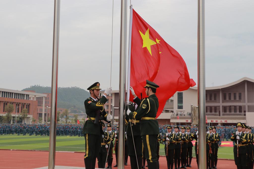 动员大会在庄严的升旗仪式与奏唱国歌中拉开序幕。