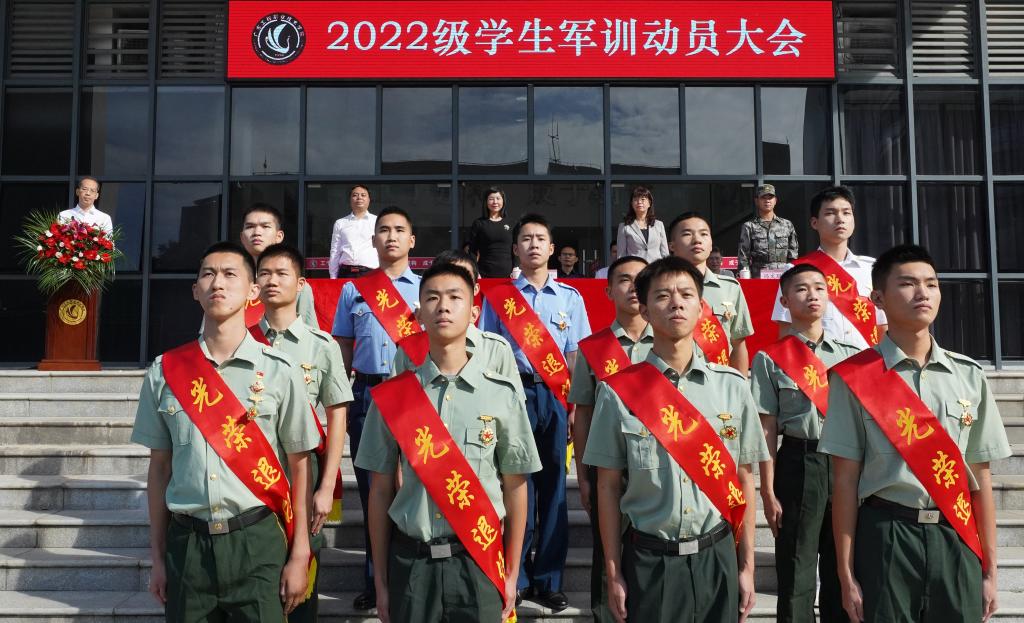 参训学生代表信息工程学院廖家俊、建筑工程学院徐裕竣发出倡议,全体2022级同学在军训中服从命令、听从指挥,严守纪律、锤炼品格,虚心学习,刻苦训练,以昂扬的斗志和饱满的热情投入到军训中去,高质量完成此次军训。
