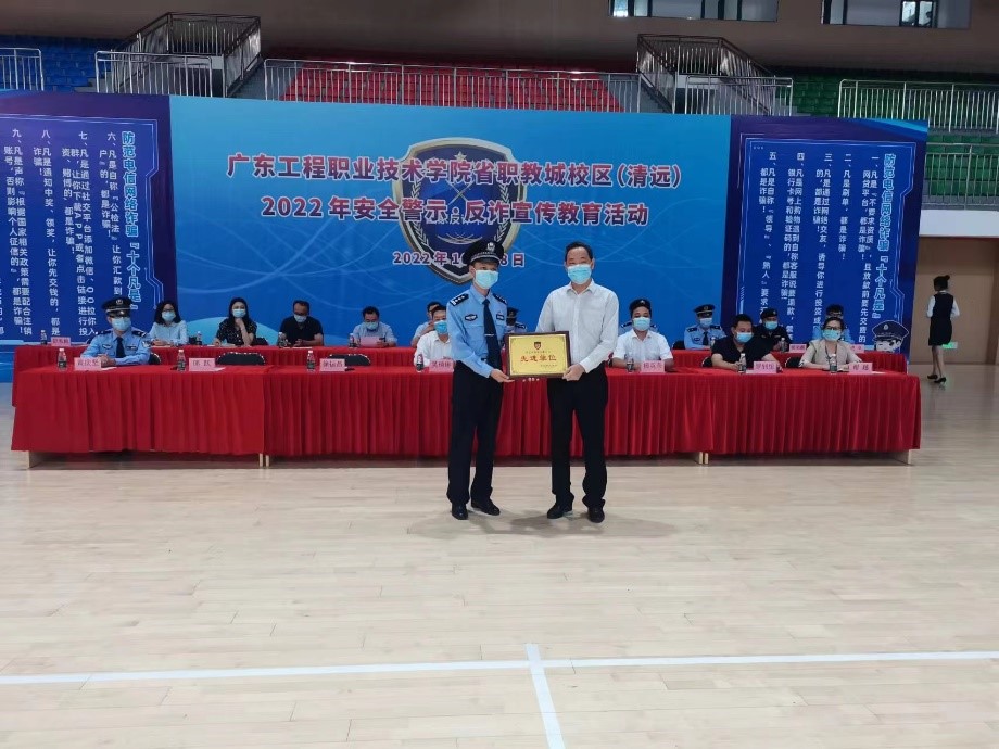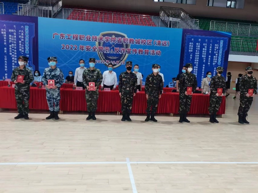 在学校党委的正确领导下,学校的安全稳定工作得到了属地单位的充分肯定,继2020年学校义警队获得清远市政法委、清远市公安局、清远市民政局群防群治工作通报表扬后,今年学校获得了清远市清城义警工作先进单位,义警队员获得优秀义警荣誉,徐振昌副书记代表学校接受了清远市清城义警工作先进单位牌匾。