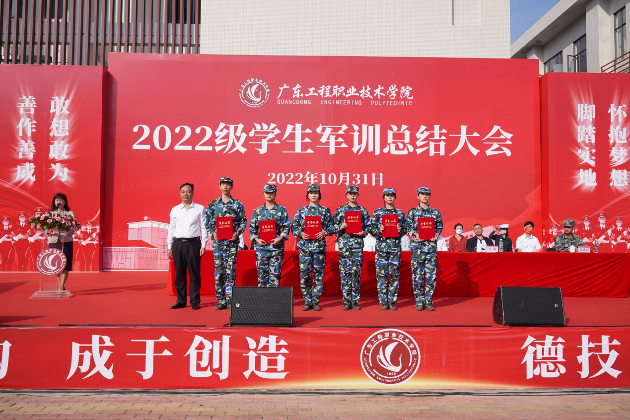 副校长揭英荣宣读了《关于表彰2022级学生军训优秀集体和个人的决定》,向优秀内务宿舍代表、军训优秀学员颁发了证书。